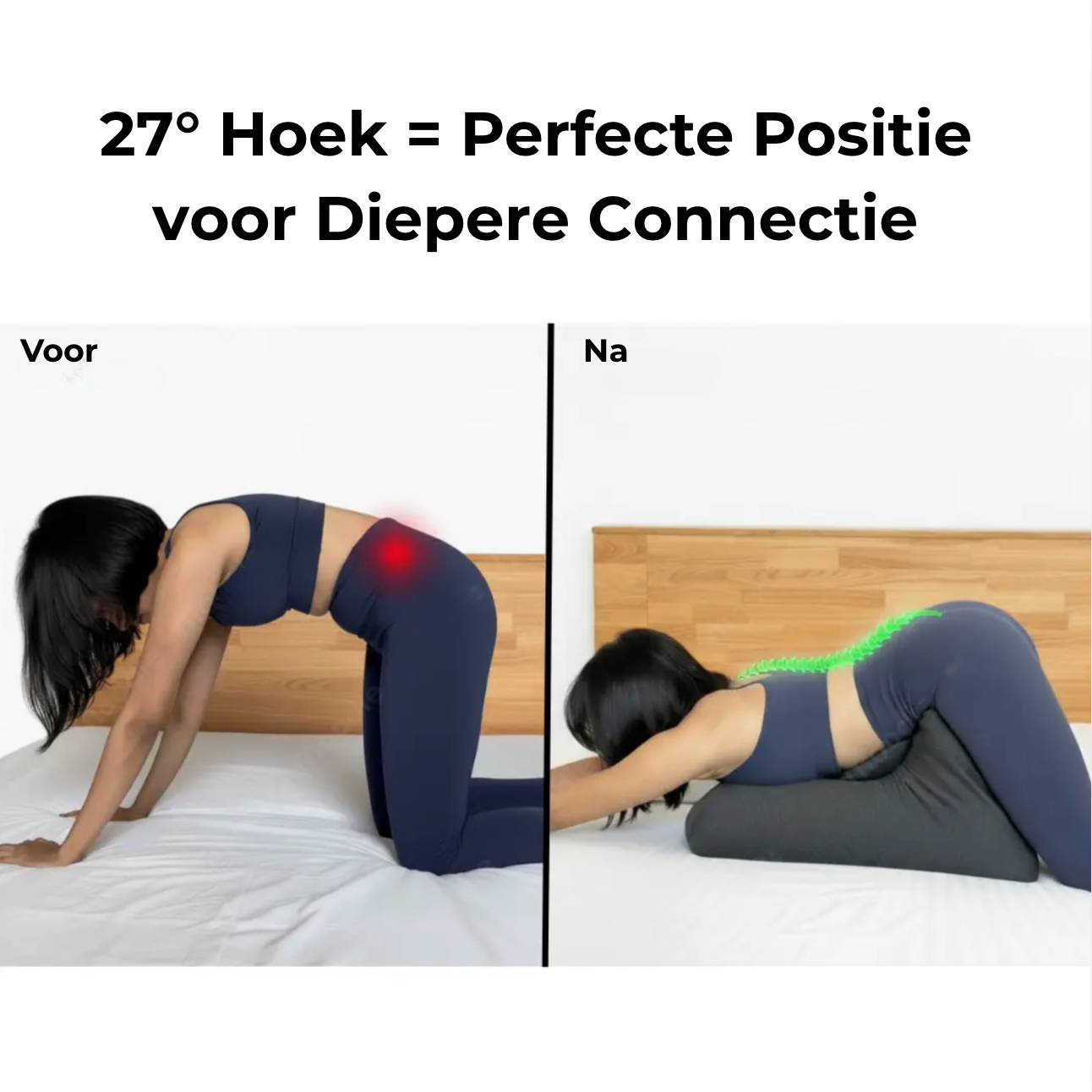 Der 27°-Winkel kippt das Becken präzise und sorgt für einen besseren Sitz. Weniger Drängen und Schieben, intensiverer Kontakt an den richtigen Stellen. Das Kissen nimmt die Spannung und lässt die Funken sprühen. Für ein längeres, intensiveres und deutlich weniger ermüdendes Erlebnis.