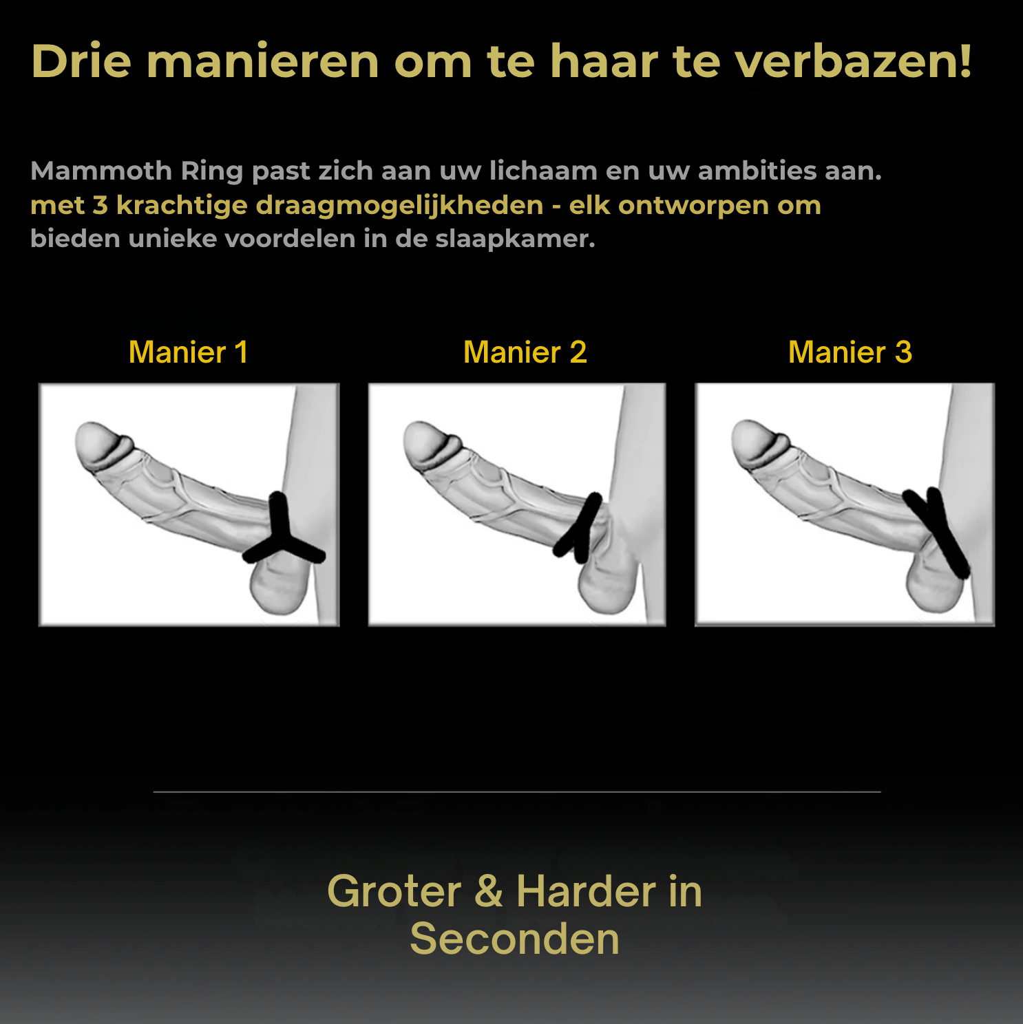 De Mammoet Ring stimuleert de doorbloeding, helpt je harder en steviger te worden en geeft je direct feedback op je lichaam. Geen pillen, geen ingewikkelde stappen – gewoon een praktisch hulpmiddel om je prestaties te verbeteren en je vertrouwen te herstellen.